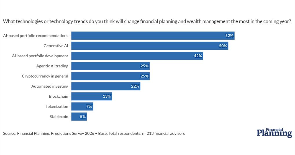 Financial Planning’s Predictions 2026 survey, fielded in November and December 2025, asked financial advisors which technologies they believe will most change the field this year.
