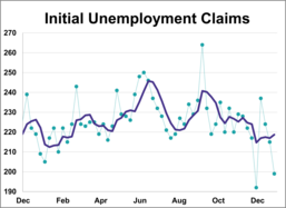 In the week ending December 27th, initial jobless claims were at a seasonally adjusted level of 199,000. This represents a decrease of 16,000 from the previous week’s figure and was lower than the forecast of 219,000. 16K Claims Expected Initial Unemployment