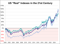 Here is a look at real (inflation-adjusted) charts of the S&P 500, Dow 30, and Nasdaq composite since their 2000 highs. We’ve updated this through the December 2025 close. December Dow Highs Nasdaq SampP